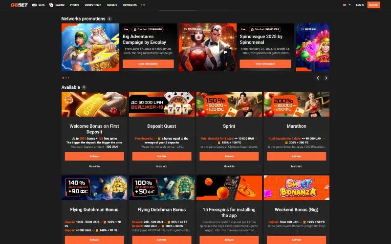 GGbet oferuje siedmiopoziomowy bonus powitalny, cotygodniowe i weekendowe nagrody, promocje Pragmatic Play oraz darmowe spiny za zainstalowanie aplikacji. Nie są wymagane żadne kody promocyjne.